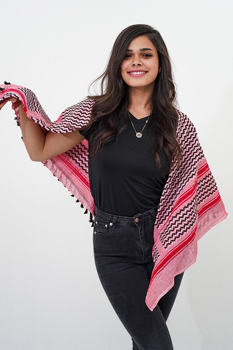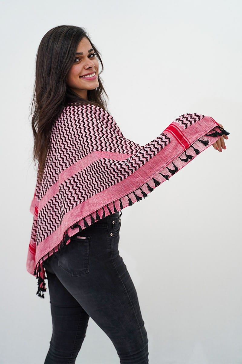 The kufiya can be worn by anyone in support of the Palestinian cause. In fact, Palestinians love to see people from around the world expressing support through this meaningful fabric. When you choose to wear a Kufiya made in Palestine, it means you are aware of its cultural significance and are benefiting its original community. Whereas, wearing an imitation just for fashion, without any connection to its roots, can be considered cultural appropriation.