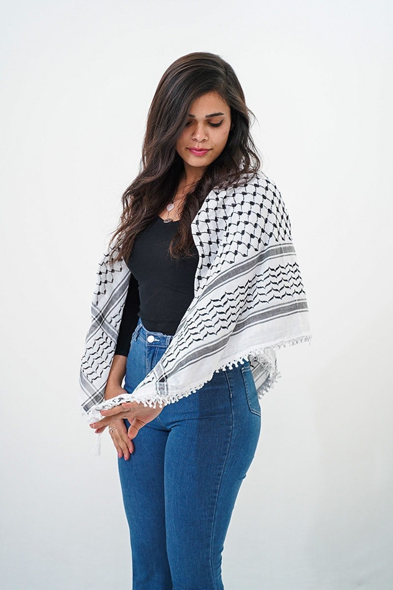 The kufiya can be worn by anyone in support of the Palestinian cause. In fact, Palestinians love to see people from around the world expressing support through this meaningful fabric. When you choose to wear a Kufiya made in Palestine, it means you are aware of its cultural significance and are benefiting its original community. Whereas, wearing an imitation just for fashion, without any connection to its roots, can be considered cultural appropriation.