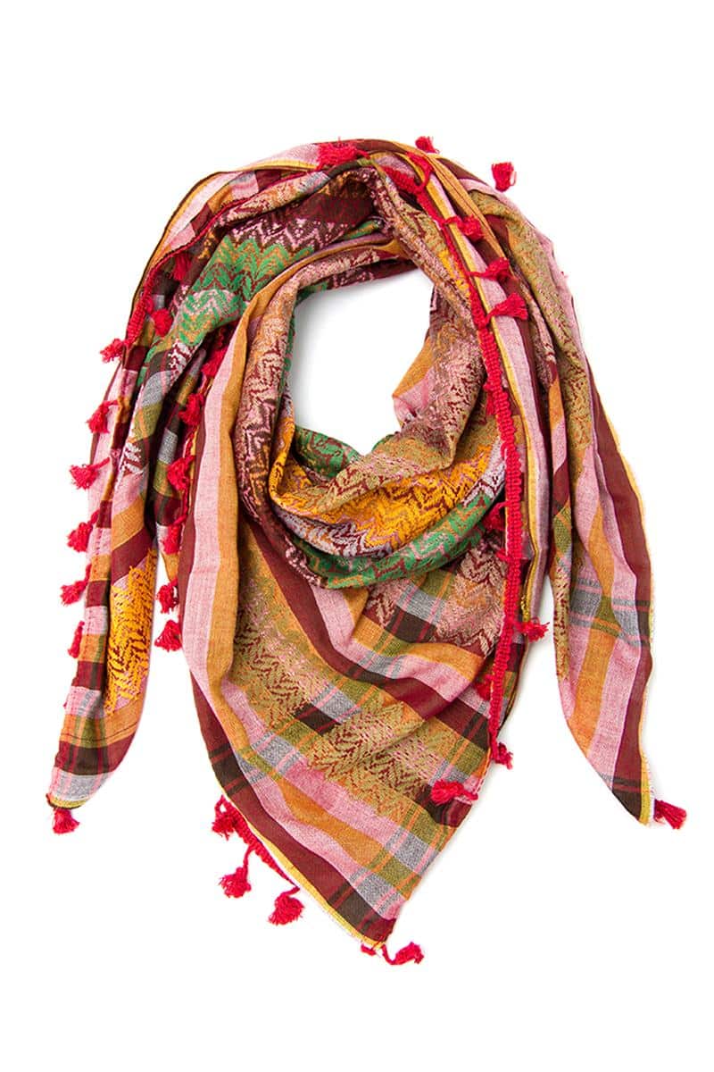 Celebrate the vibrant spirit of Gaza with our authentic and traditional Gaza Hirbawi® Kufiya, proudly made in Palestine. This Palestinian Keffiyeh features a captivating pattern in green, yellow, rose, and bordaux, creating a dynamic and eye-catching design. The red laces that surround the vibrant Shemagh pay tribute to the Gazans’ love for spicy food, where chilli is a staple ingredient in their flavorful cuisine. Immerse yourself in the joyful nature of the Gazans as you embrace this unique and meaningful Keffiyeh, a symbol of their resilience and zest for life. Despite enduring centuries of bitter contestation by various powers throughout history, Gaza, known as “Gazza Ard el-Izza” (the glorious city), remains at the forefront of Palestinian history. It is here that the Israeli occupation is repeatedly challenged, showcasing the unwavering spirit and determination of its people.