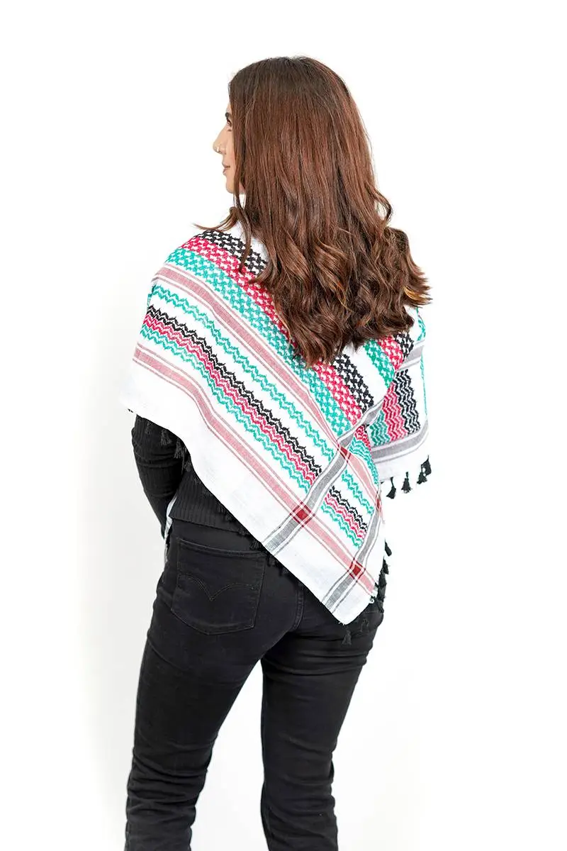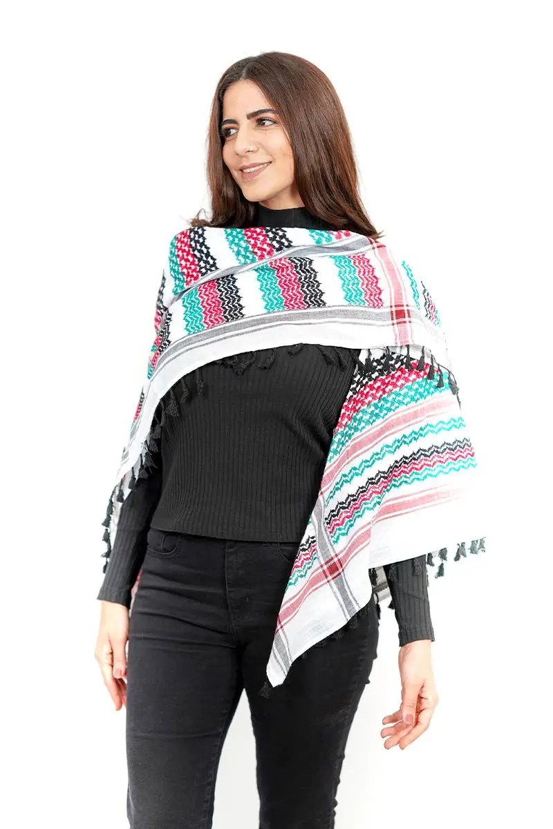 The Keffiyeh now comes in a variety of colours and patterns that are evolving alongside Palestinian culture. Today, a wide selection of designs are available, based on historic landmarks, and elements of Palestinian culture, as well as the traditional staple Keffiyeh patterns that are known and loved around the world.