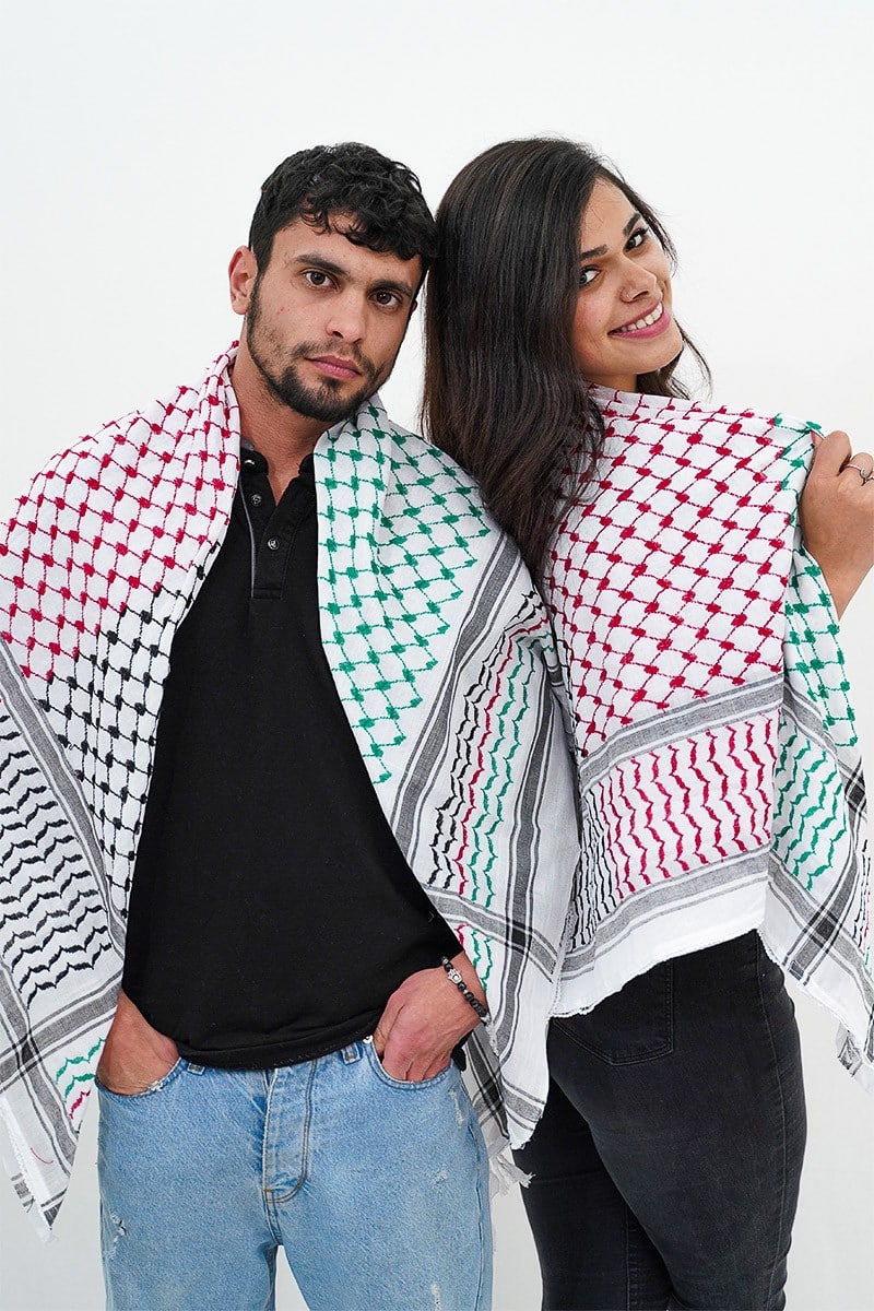The kufiya can be worn by anyone in support of the Palestinian cause. In fact, Palestinians love to see people from around the world expressing support through this meaningful fabric. When you choose to wear a Kufiya made in Palestine, it means you are aware of its cultural significance and are benefiting its original community. Whereas, wearing an imitation just for fashion, without any connection to its roots, can be considered cultural appropriation.
