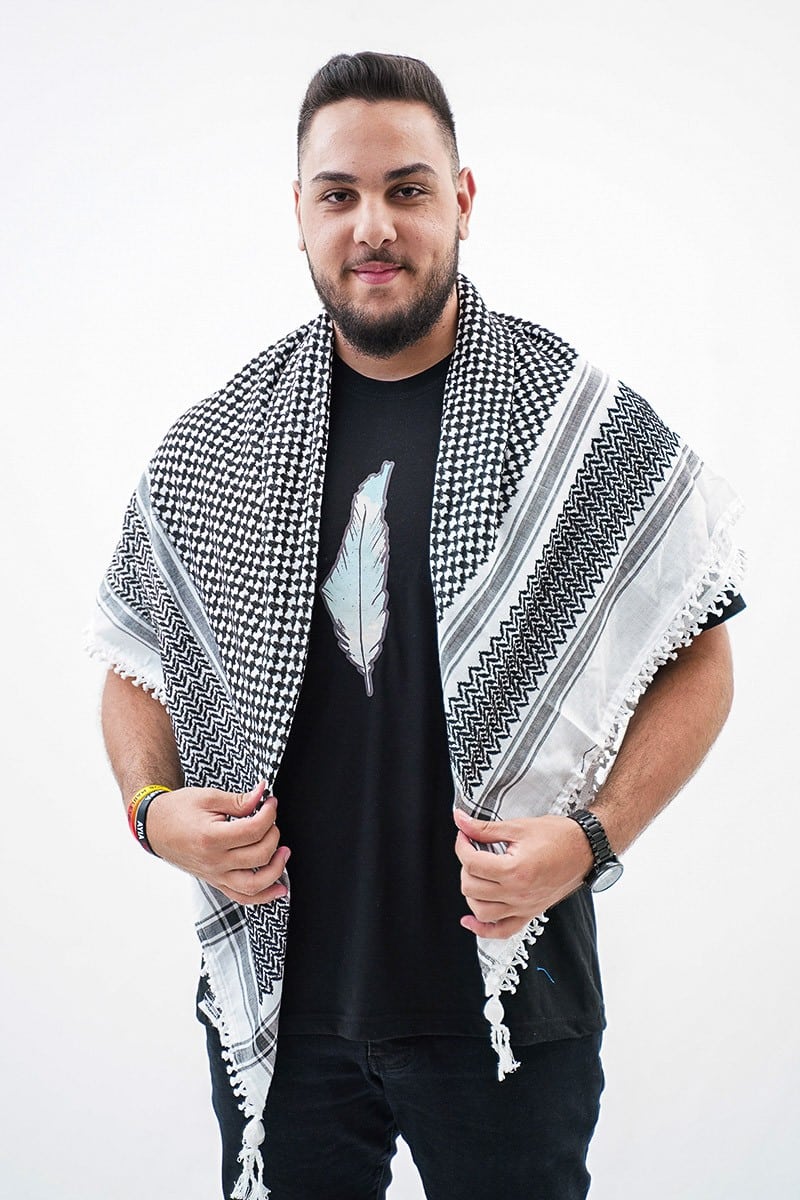 The kufiya can be worn by anyone in support of the Palestinian cause. In fact, Palestinians love to see people from around the world expressing support through this meaningful fabric. When you choose to wear a Kufiya made in Palestine, it means you are aware of its cultural significance and are benefiting its original community. Whereas, wearing an imitation just for fashion, without any connection to its roots, can be considered cultural appropriation.