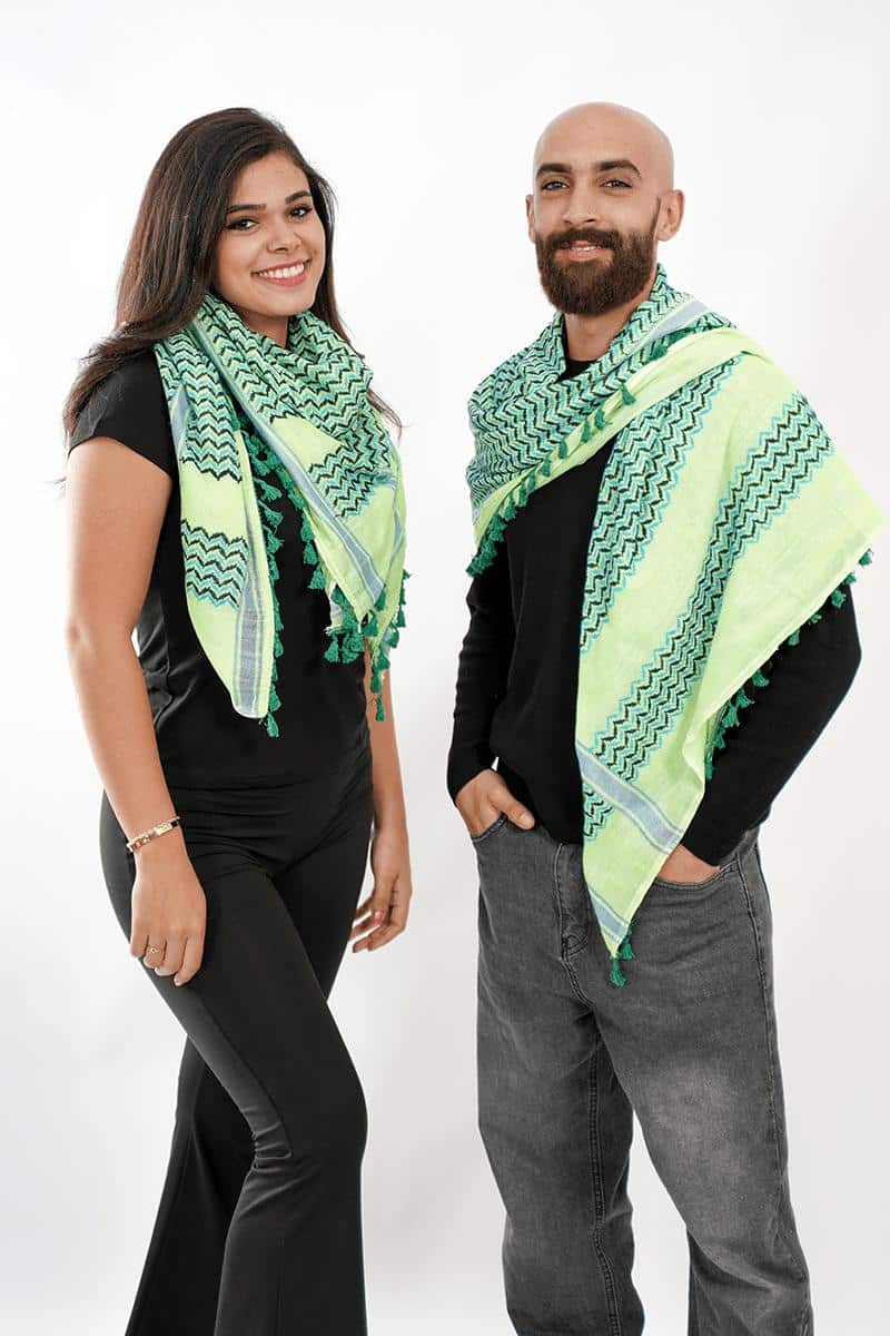 The Keffiyeh now comes in a variety of colours and patterns that are evolving alongside Palestinian culture. Today, a wide selection of designs are available, based on historic landmarks, and elements of Palestinian culture, as well as the traditional staple Keffiyeh patterns that are known and loved around the world.