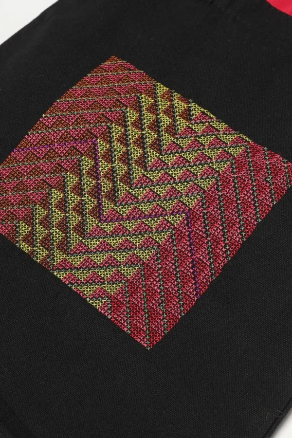 Such threads may occur because during production, the ends of the pattern are trimmed by hand by one of our artisans. Small ends of the threads may remain, but these can be easily picked and removed, or will naturally fall off when the kufiya is washed.