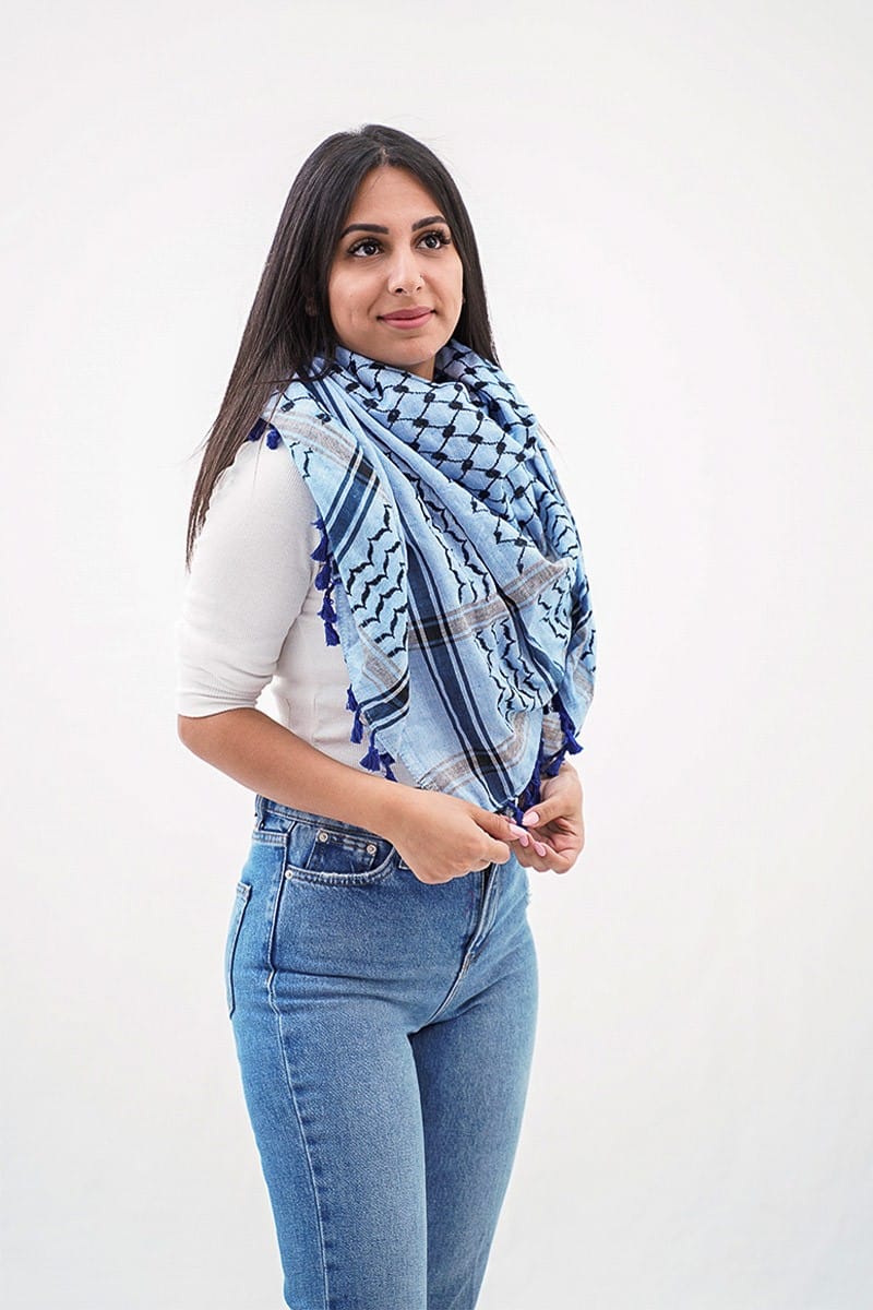 The kufiya can be worn by anyone in support of the Palestinian cause. In fact, Palestinians love to see people from around the world expressing support through this meaningful fabric. When you choose to wear a Kufiya made in Palestine, it means you are aware of its cultural significance and are benefiting its original community. Whereas, wearing an imitation just for fashion, without any connection to its roots, can be considered cultural appropriation.